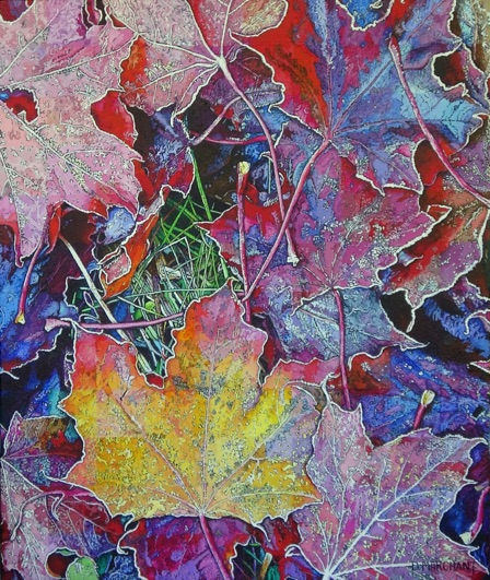 When I selected this image to paint it was the colors that attracted me, but as I proceeded in painting it, against all of the madness that is happening in the United States, I began to think of the painting as a homage to Canada my adopted country, whose emblem, after all is the red Maple leaf.