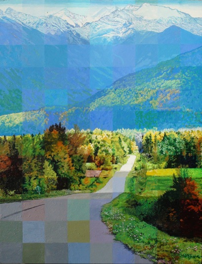 There is so much landscape around here, so I thought it was time for me to paint another one. This is an autumn scene taken from a friends driveway, looking out across the valley to the snow capped peaks beyond.